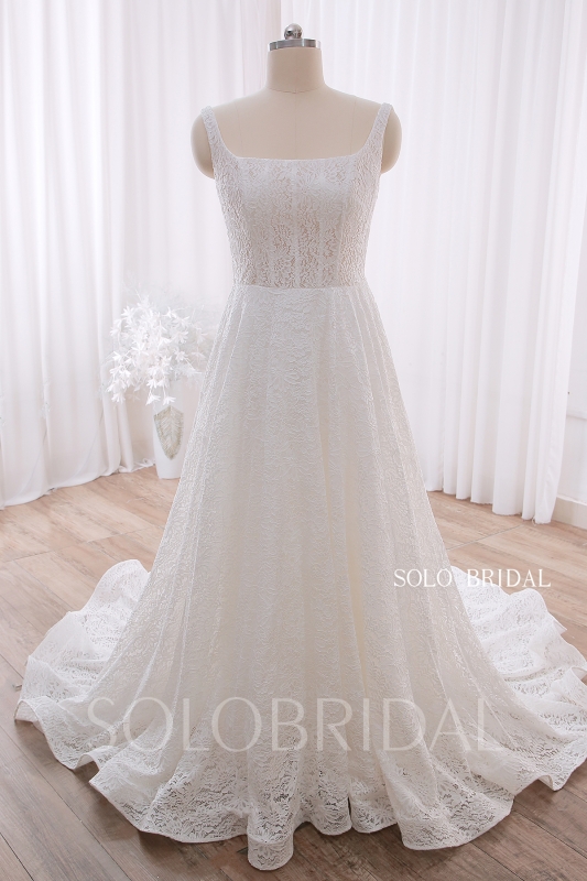 20240428B Ivory Square Neck A Line Elegant Lace Wedding Gown