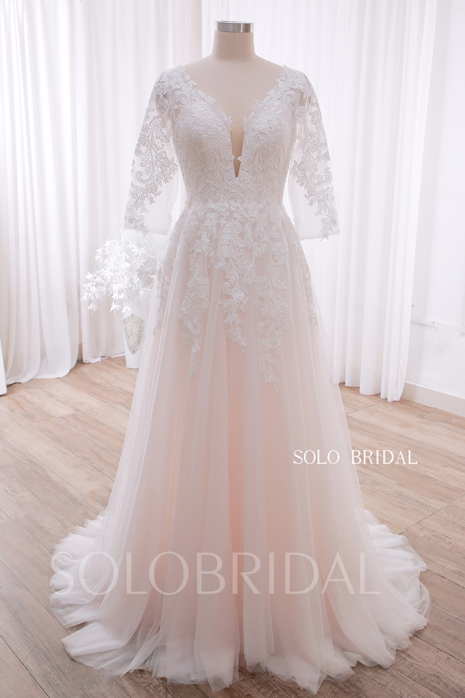 20240428D Ivory Pink Short Sleeve Sweep train Small A Line Wedding Gown