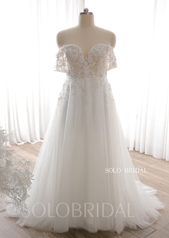 20240612C Ivory Off Shoulder Sweetheart A Line Wedding Dress