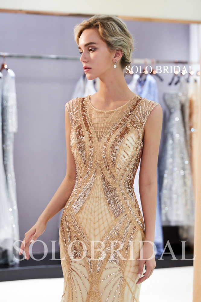 Dress Style fit and flare Neckline Round neck Back closure Invisable zipper Rbbion/Belt N/A Hem length Floor length Sleeves Sleeveless Support bonings built in bra breast pads Fabrics lining Satin tulle Train Court train Type of beads diamonds