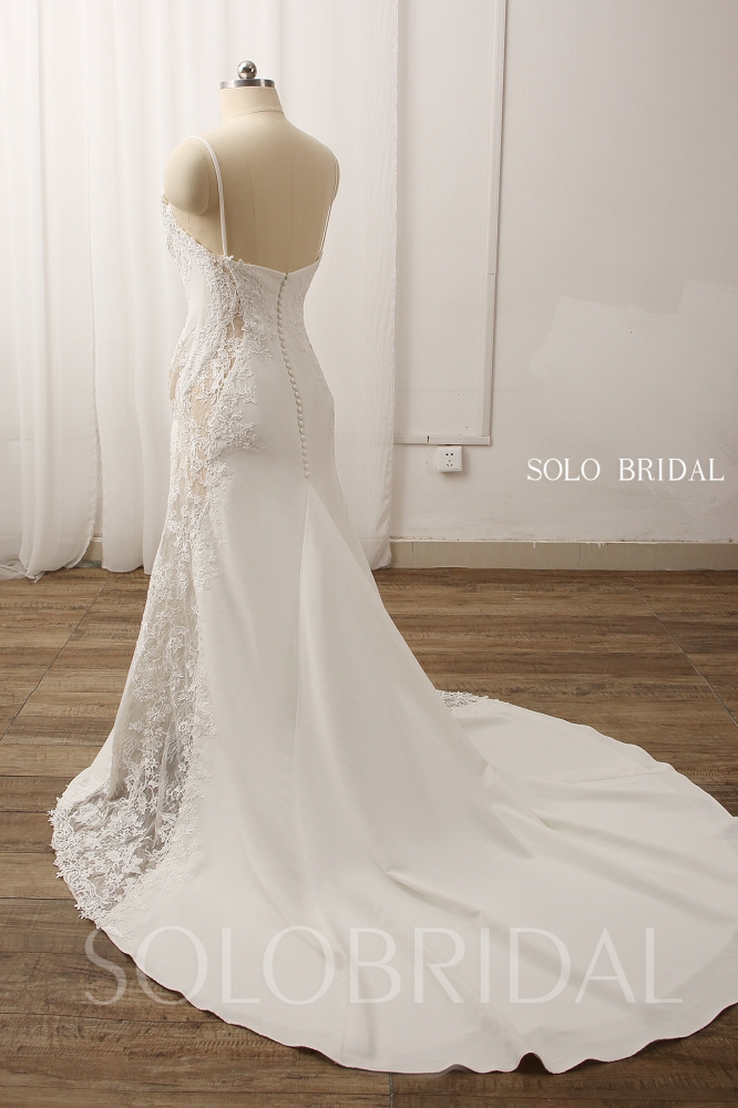 Dress Style A line Neckline V neck Back closure Zipper with buttons Rbbion/Belt N/A Hem length Floor length Sleeves Sleeveless Support Build in boning bra breast pads Fabrics lining tulle crepe Train Chapel train Type of beads No beads