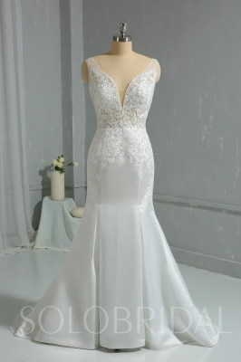 Ivory Fitted Mermaid Wedding Dress thin Lace straps 724A8546
