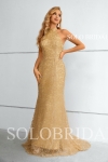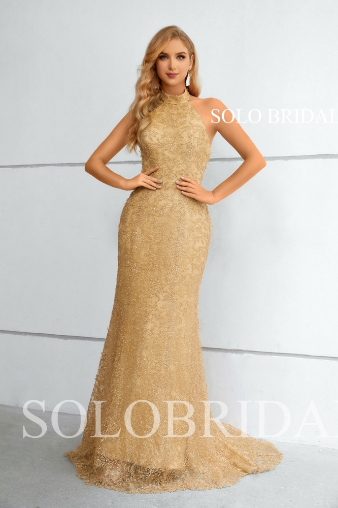 Gold Halter Fit and Flare Small Trail Evening Dress 3510891