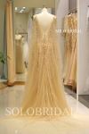 Gold tulle beaded a line proom dress K827171
