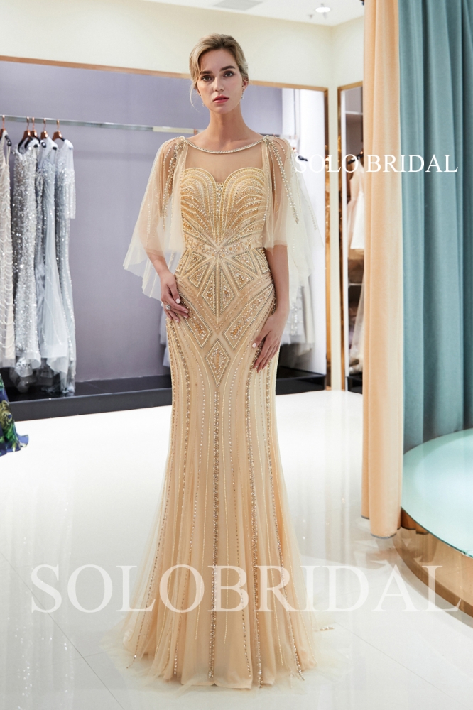 Grey and champagne tulle beading lines shiny proom dress J946821