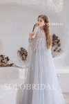 Dress Style A line Neckline V Neck Back closure Invisible Zipper Ribbon/Belt N/A Hem length Floor length Sleeves Wrap Sleeve Support build in breast pad Fabrics lining satin shiny tulle Train Chapel Train Type of beads same as picture