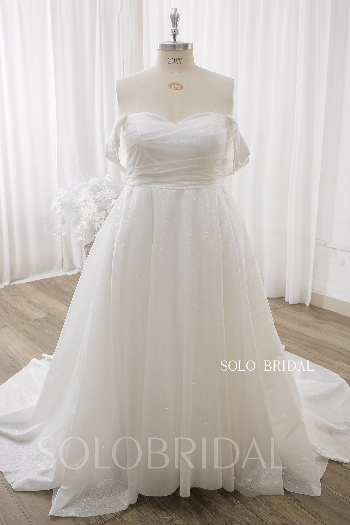 Ivory Plus Size Off Shoulder Ball Gown Sparkling Wedding Dress 724A6837