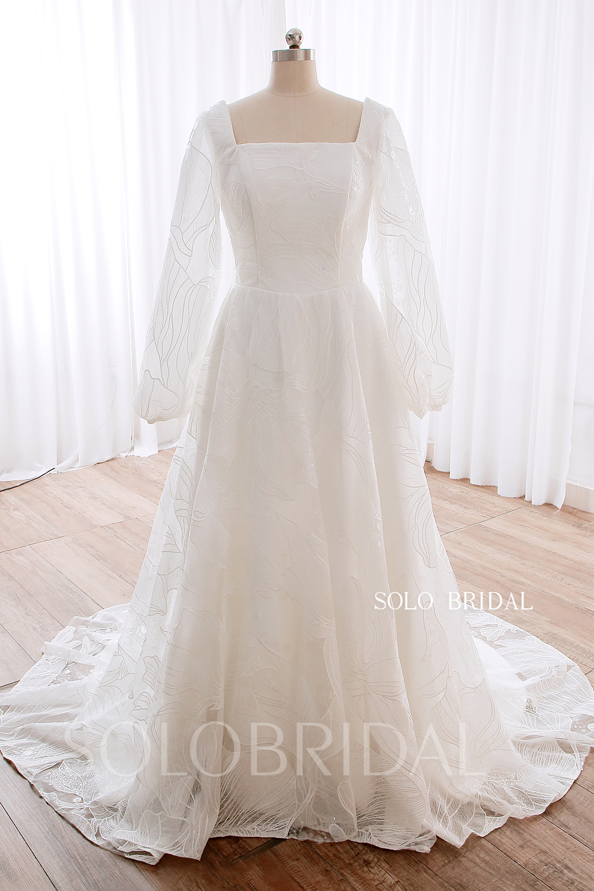 DPP_0055 Ivory Long Sleeve Square Neck A Line Wedding Dress