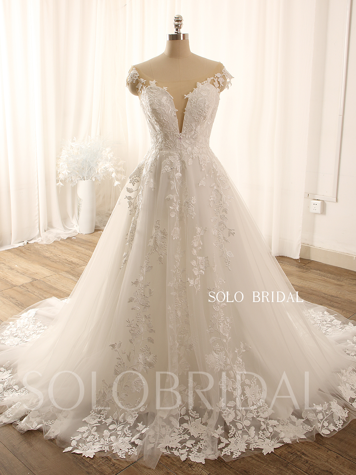 New design off shoulder A line plunge neck lace wedding dress 724A9145a