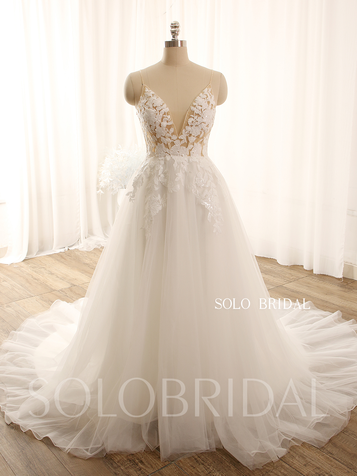 Summer A line sexy light shiny tulle wedding dress 724A9167a