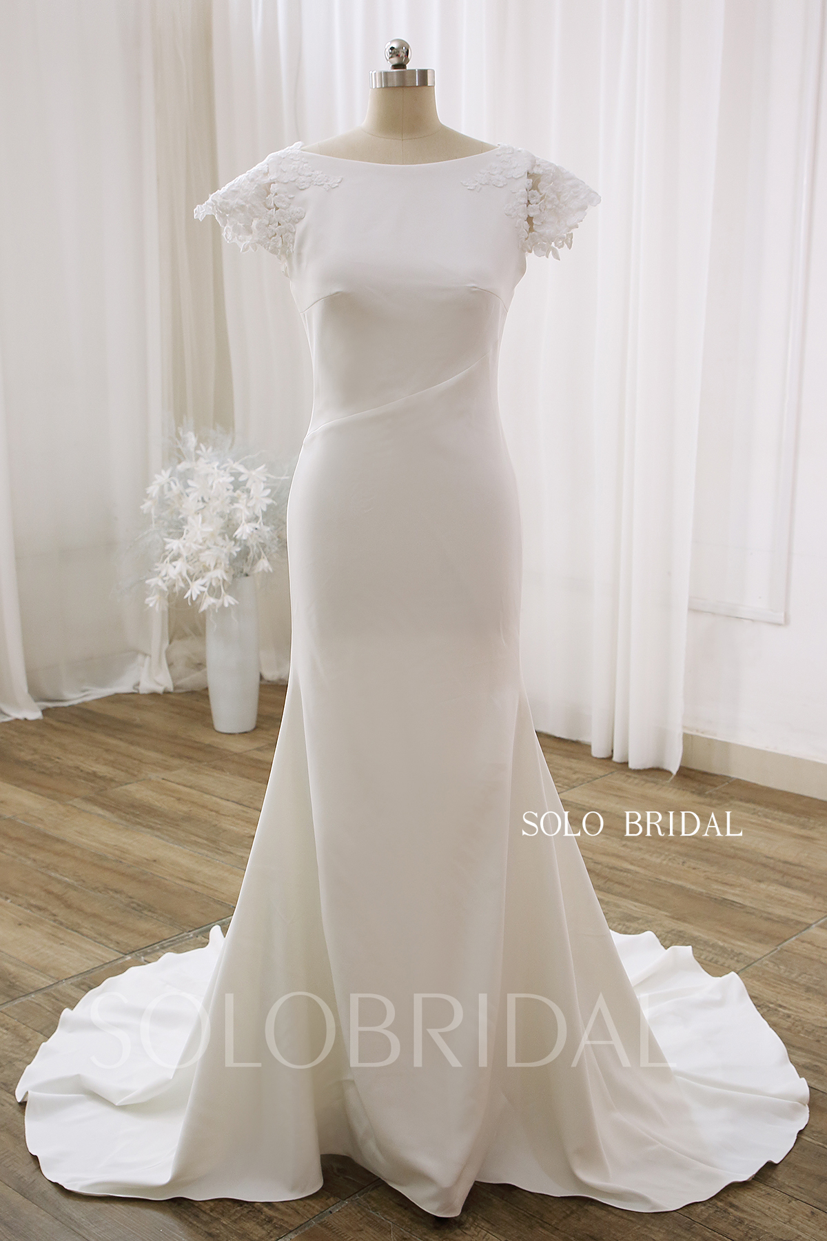 White V neck Long Sleeve Court Train Zipper Mermaid Wedding Dress DPP_0002