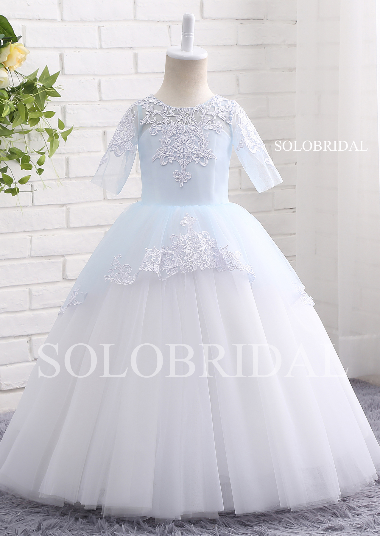 Ivory sleeves ball gown lace and tulle flower girl dress A18804