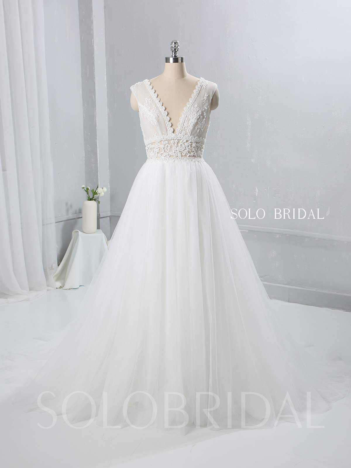 Ivory A Line Tulle Wedding Dress Seen Through Lace Bodice 724A9470a