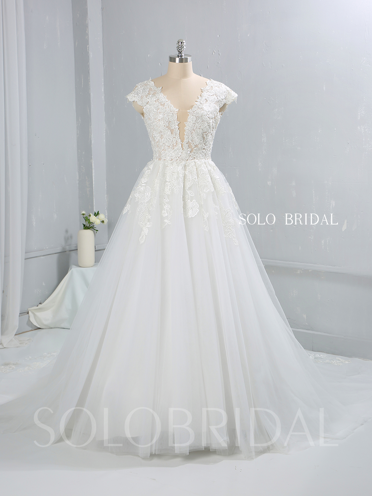 Light Ivory Cap Sleeve A Line Tulle Wedding Dress Court Train 724A9984a
