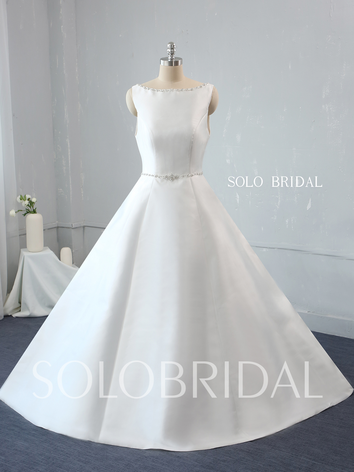 A Line Boat neckline Ivory silk Satin Diamonds Bridal Gown 724A4132