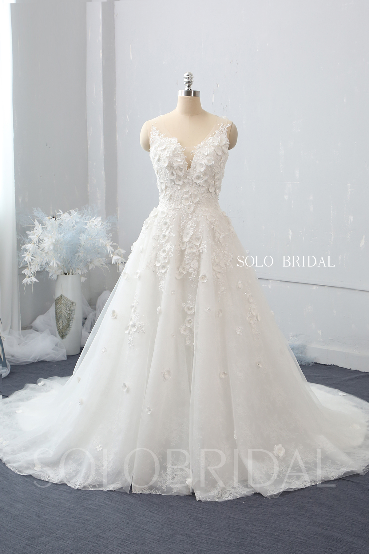 Ivory A line V neck side zipper chapel train 3D flowers wedding dress 724A8805