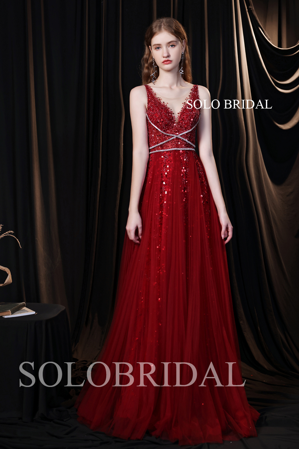 Hot Red Shiny feather Wrap Prom Dress T991022C1