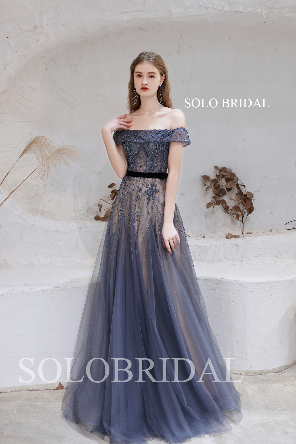 Strapless Blue Tulle beading A line Prom Dress T6110171