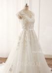 Ivory A line cotton lace cap sleeve keyhole back wedding dress 724A9568a