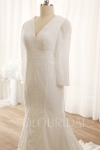 Ivory Fit and Flare Lace Long Sleeve V Neck Wedding Dress 724A9881