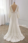 Ivory Fit and Flare Round Neck Long Sleeve Crepe Wedding Dress DPP_0056