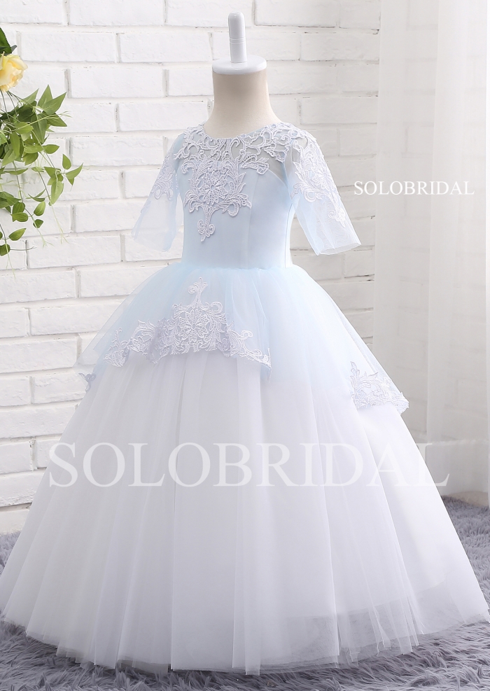 Ivory sleeves ball gown lace and tulle flower girl dress A18804