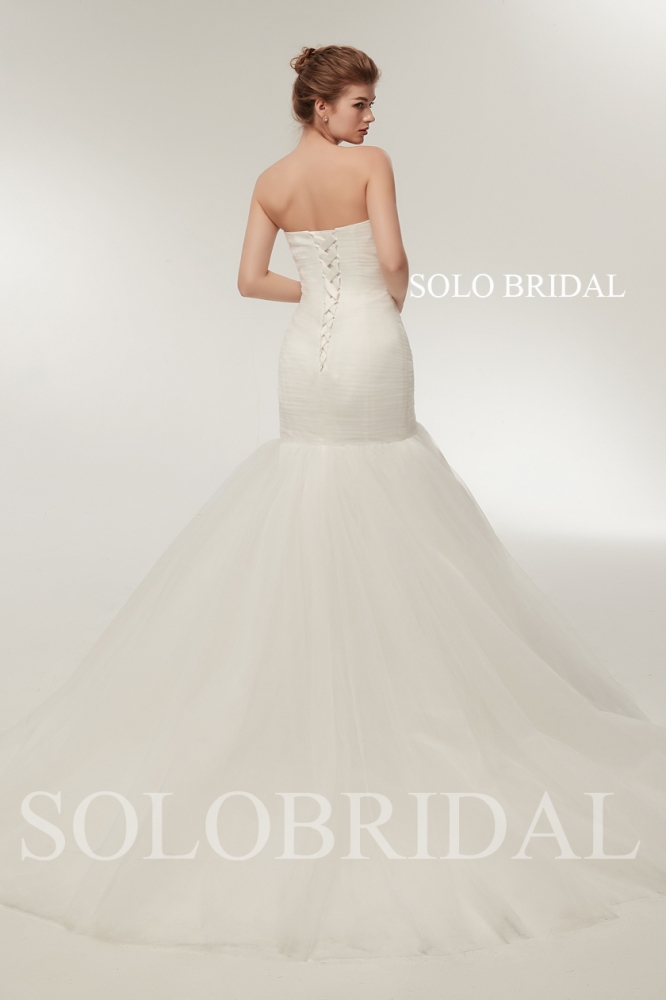 Dress Style Fit and flare Neckline Sweetheart Hem length floor length Sleeves sleeveless Support buid in bra and breast pads and bonings Fabrics lining satin tulle Train court train Type of beads no beads