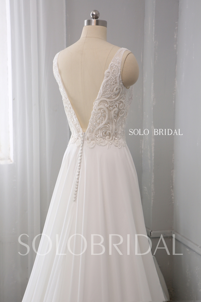 Ivory V neck chiffon wedding dress heavy beaded lace bodice 724A1349