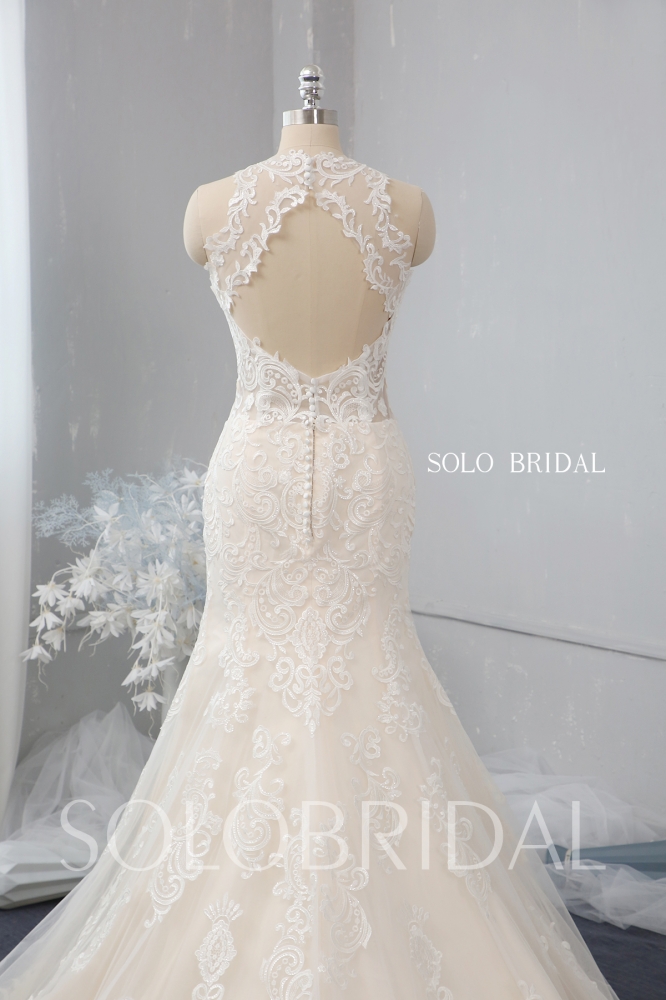 light champagne fit and flare halter wedding dress 724A2415