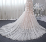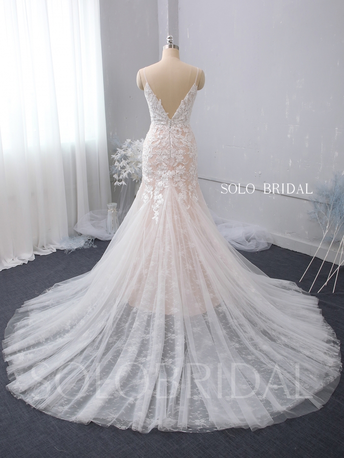 plunge neck spaghetti straps fit and flare blush pink wedding dress zipper back chapel train 724A7512
