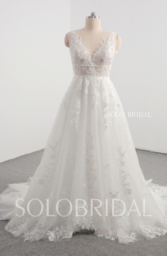 20250825A Ivory A Line Sweetheart flowy leaf lace women wedding dress