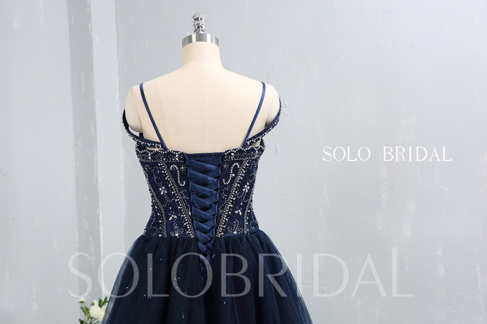 Royal Blue Heavy Beaded Proom Dress Shiny Tulle Short Skirt 724A0033a