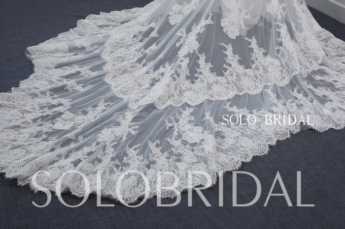 Seen through skin color bodice catherdral double layer lace train Ivory Mermaid Wedding Dress 724A4506