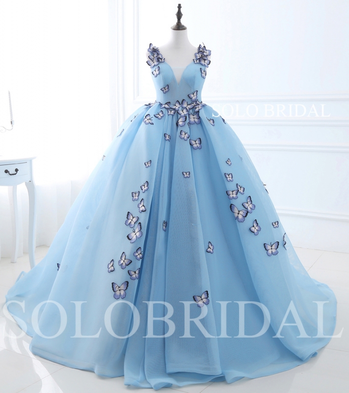 Sky blue butterfly ball gown wedding dress E264061