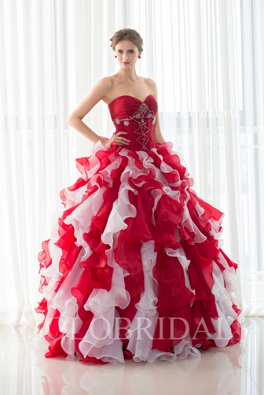 Sweetheart strapless lace up organza ruffle skirt ball gown proom dress D402851