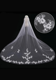 White A line Lace Tulle Wedding Dress with Chapel Train DPP_0035