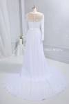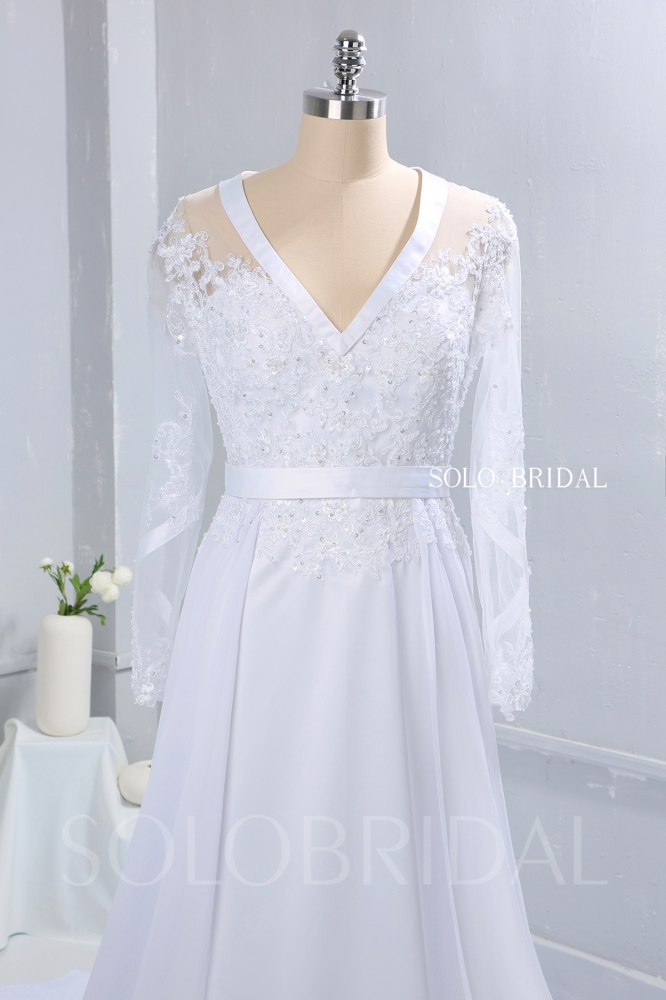 White Chiffon wedding dress satin ribbon bustline Long Sleeves 724A0502